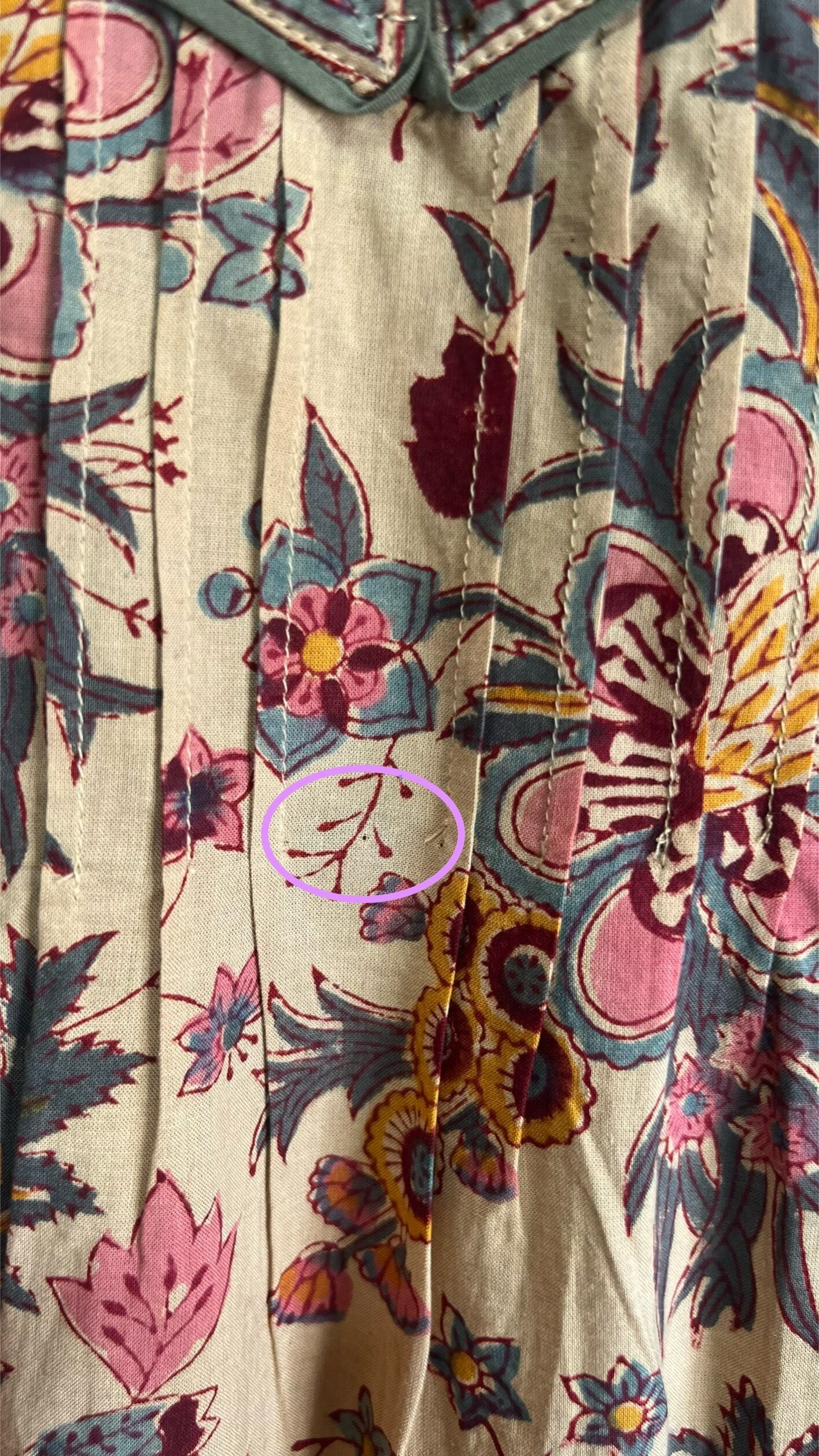 (全てのサナヤドレスに同様の針穴があります)