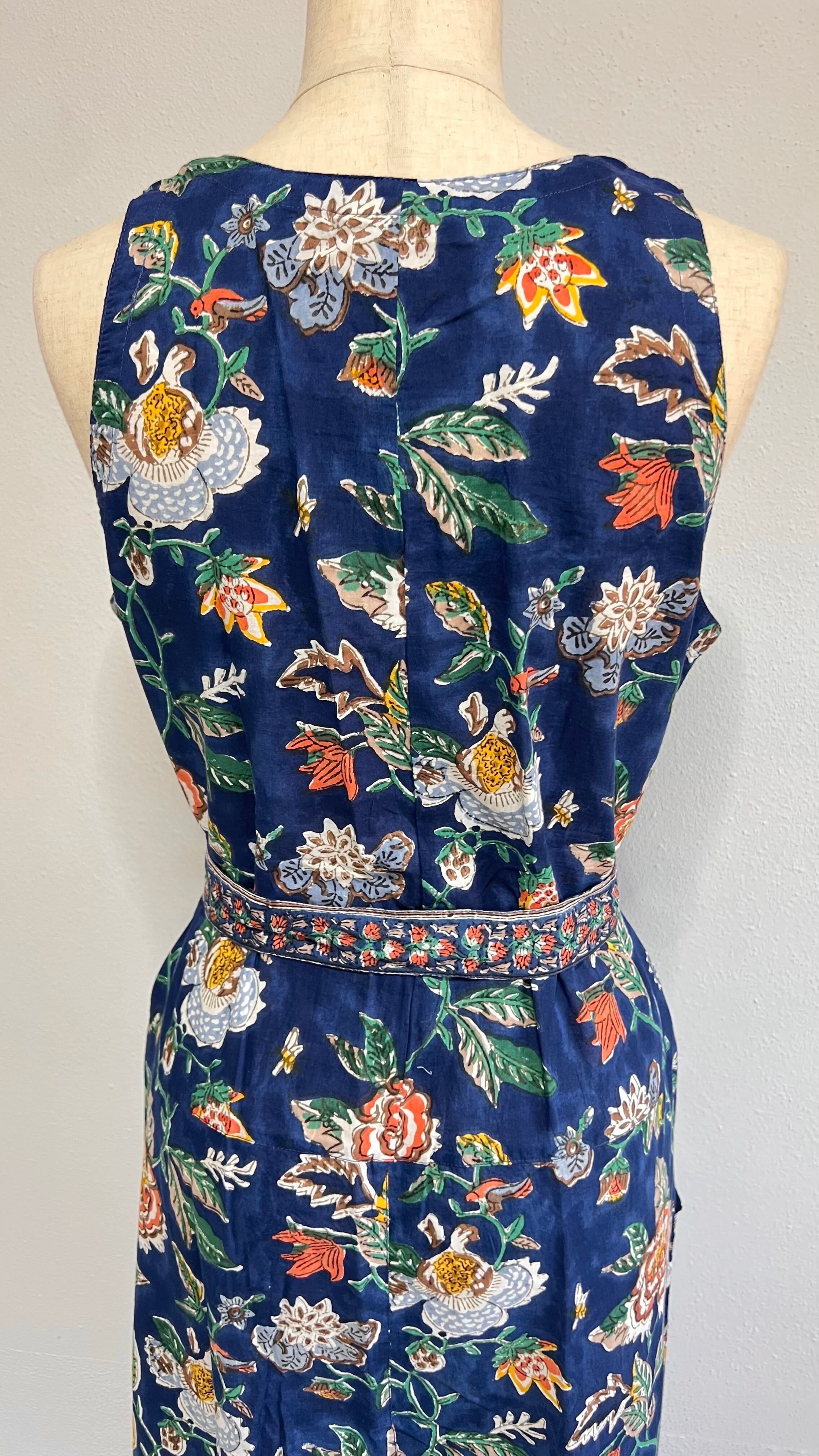 Vacationシーズンにぴったりのノースリーブ、フレアパンツタイプで、共布のベルトが付いています。(ベルト通しはありません)