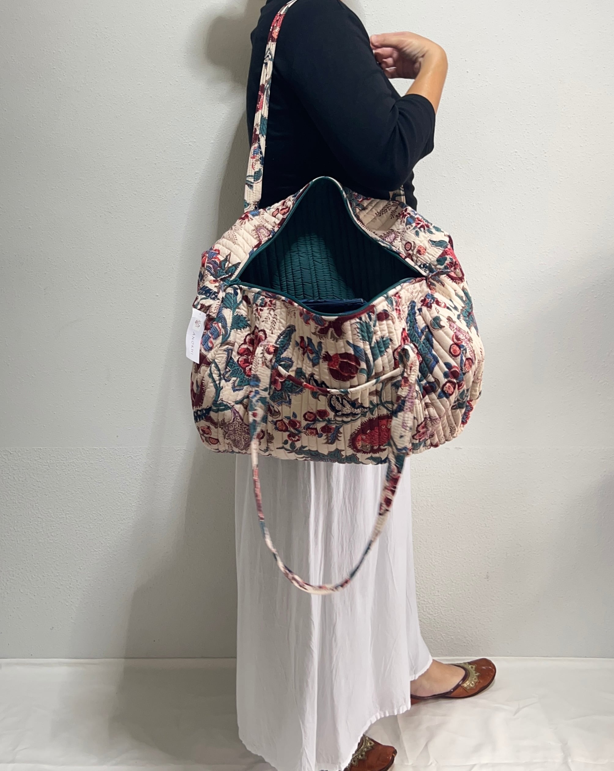 【ご予約品(訳あり)】ANOKHI -キルティングボストンバッグ アイボリーボタニカル