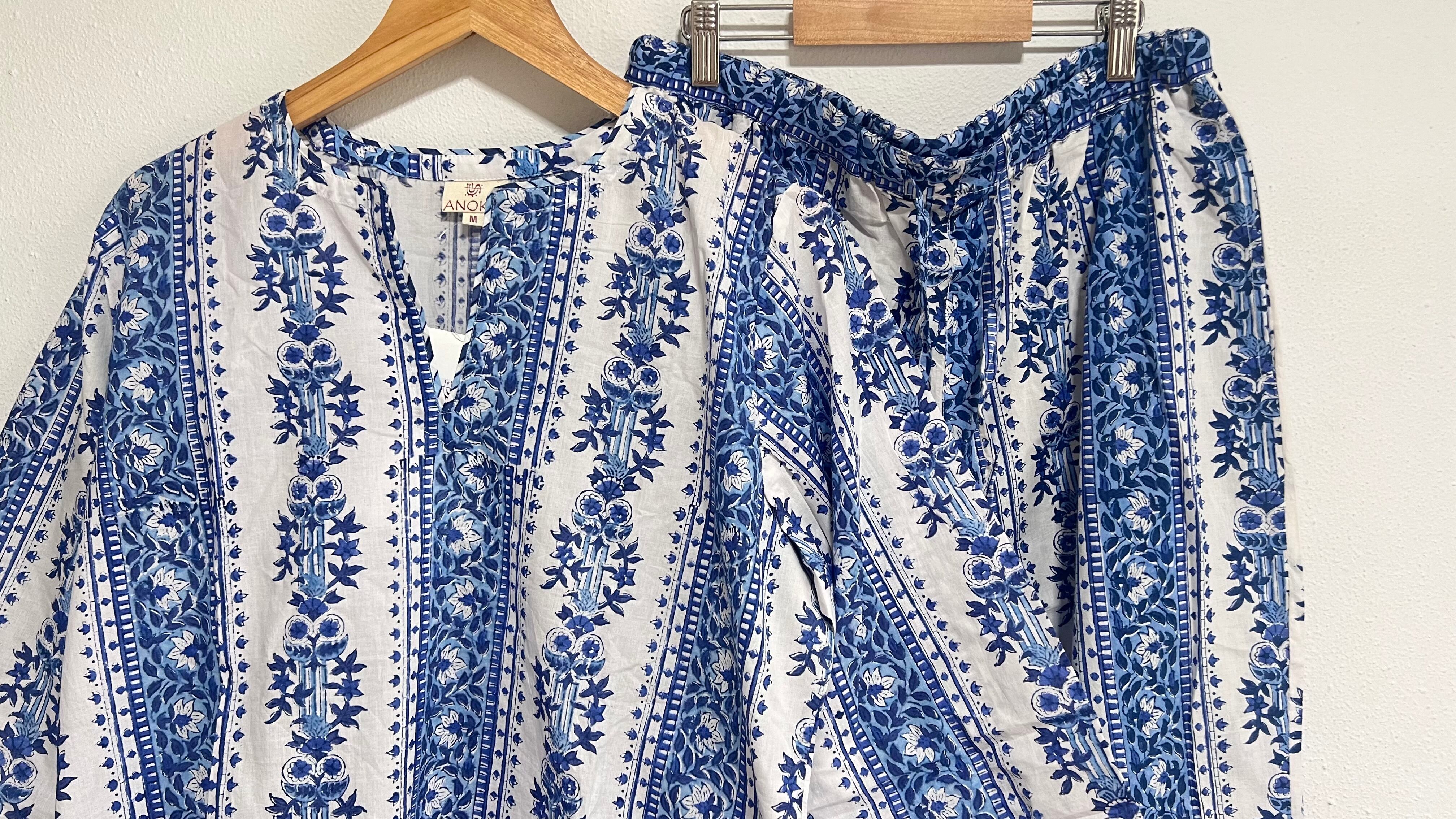 【リクエスト品】ANOKHI ルームウェア上下セット Mサイズ ブルーフラワー