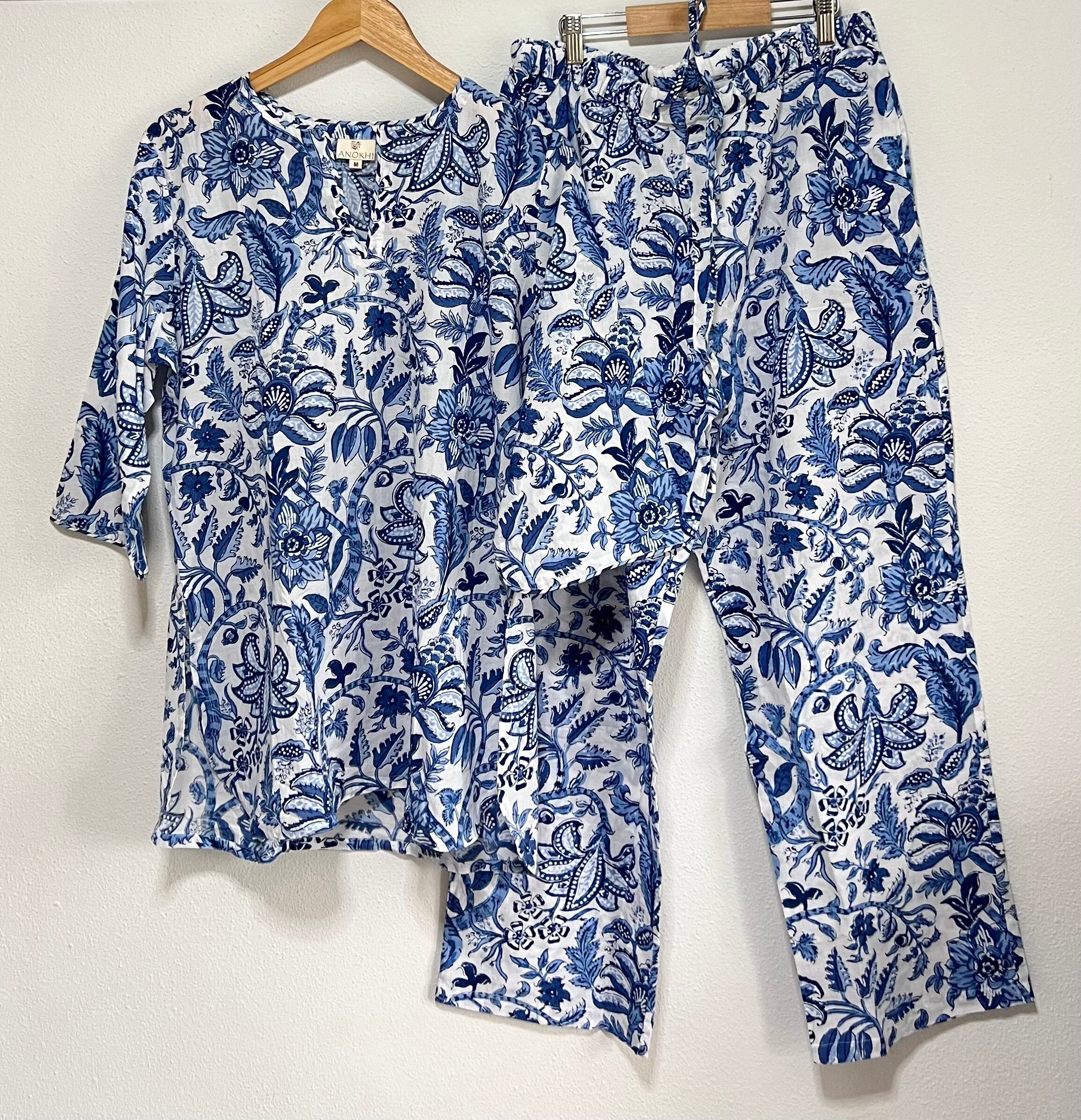 【リクエスト品】ANOKHI ルームウェア上下セット Mサイズ ブルーボタニカル