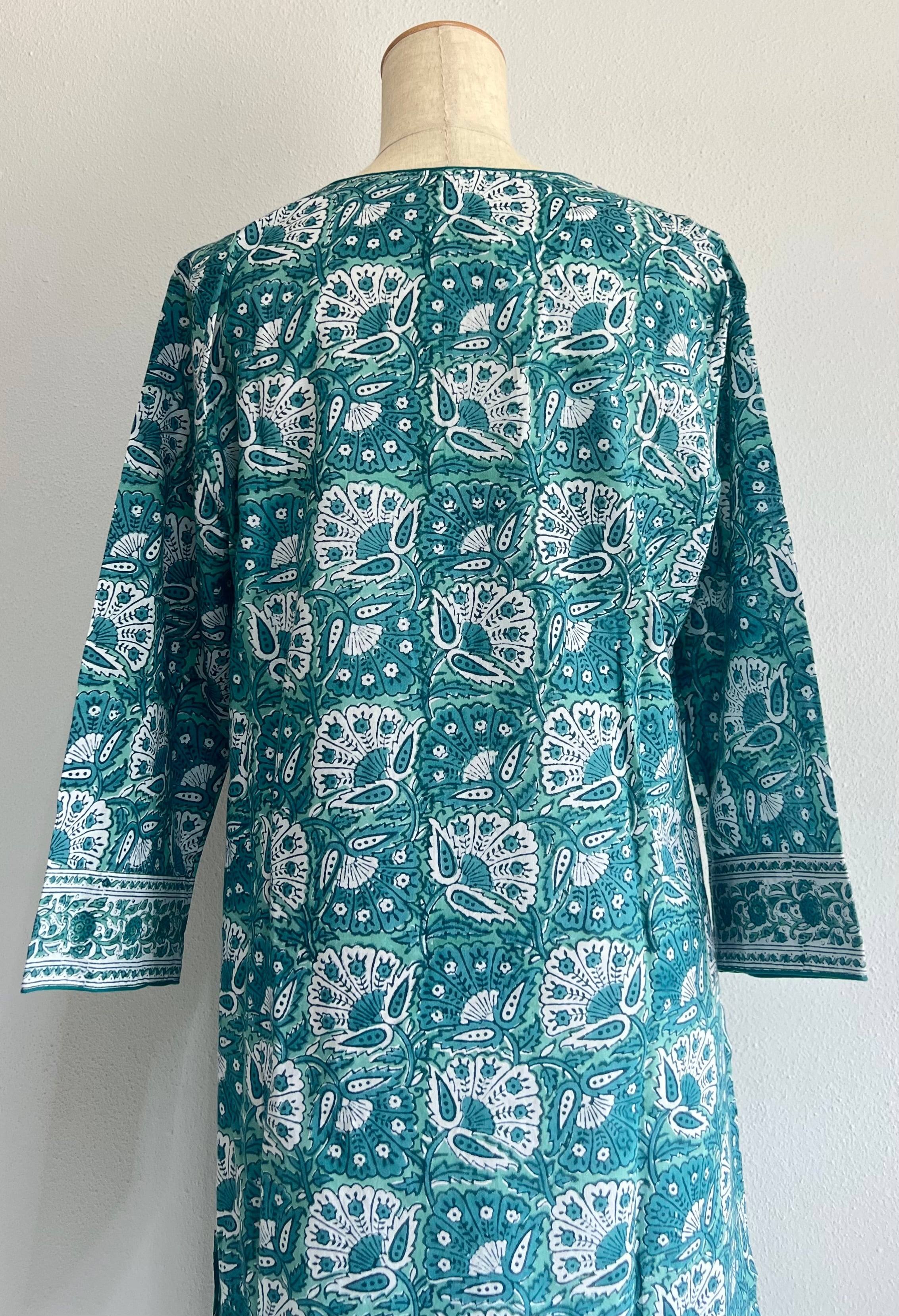 ブルーグリーンのフラワーモチーフが爽やかでとても素敵なデザインです。