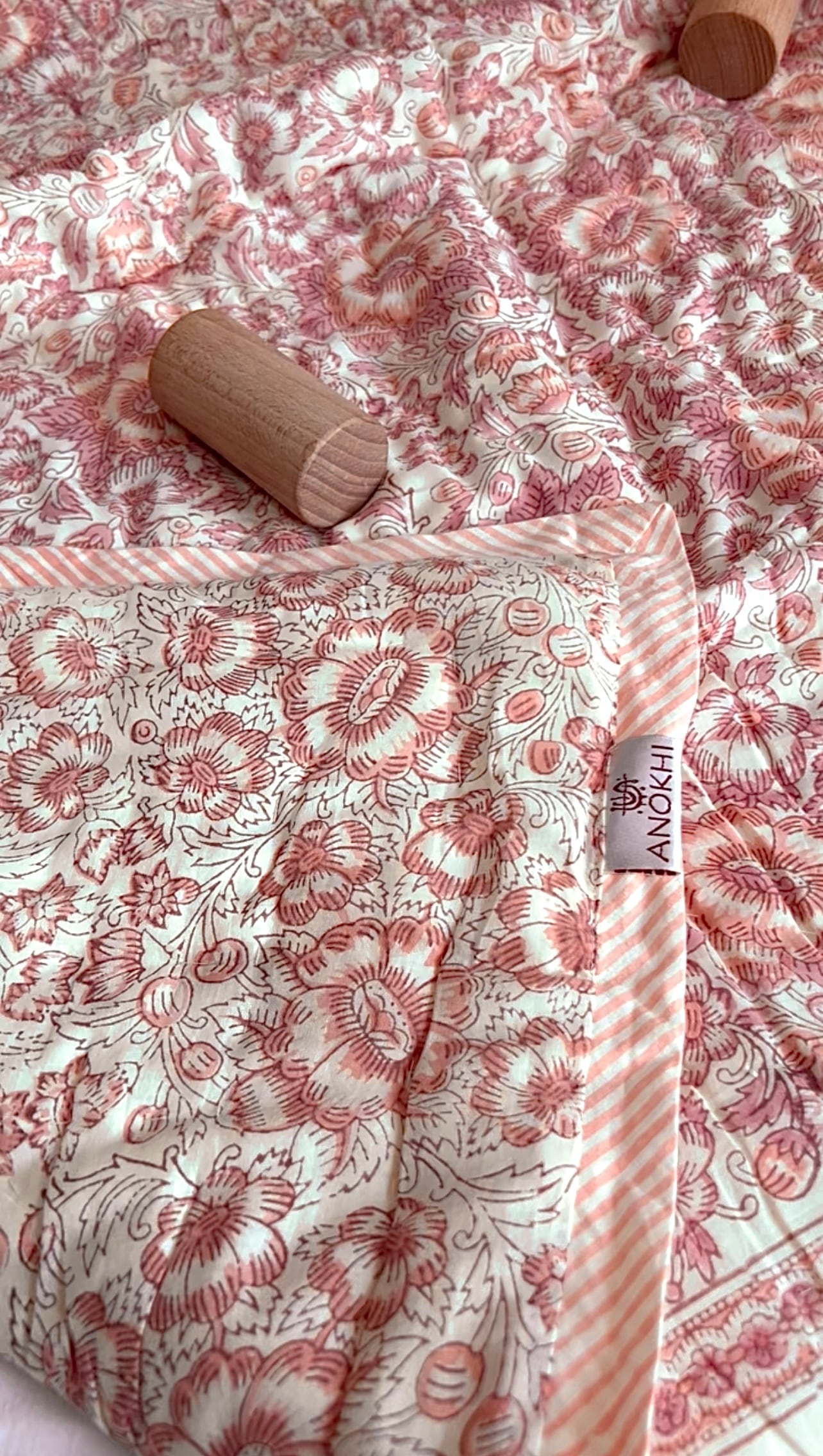 【M・A様ご予約品】ANOKHI リバーシブルベビーキルト(80×110cm) ピンクフラワー