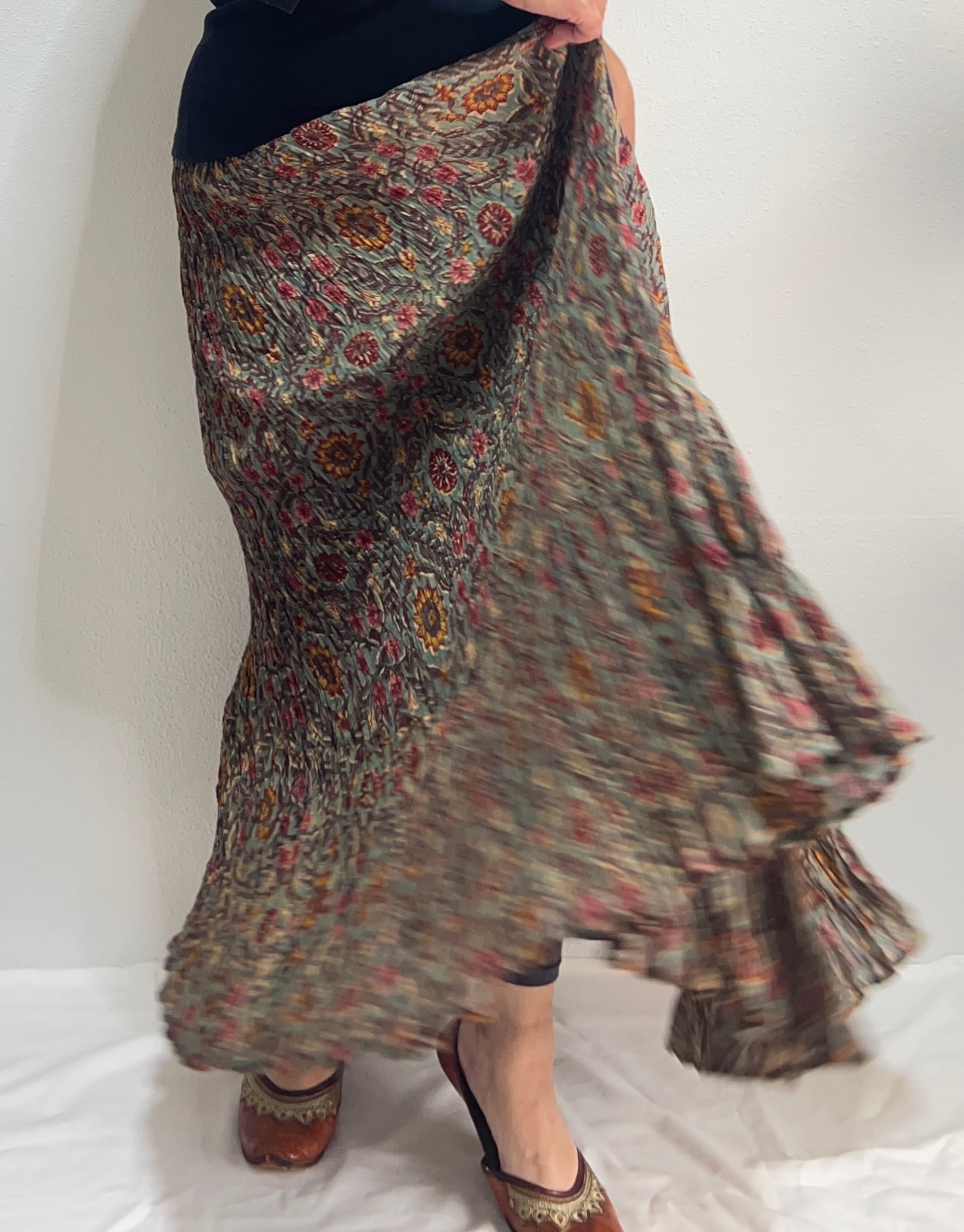 ANOKHI hand crinkled ティアードロングスカート(シワ加工) -Islemer collection-